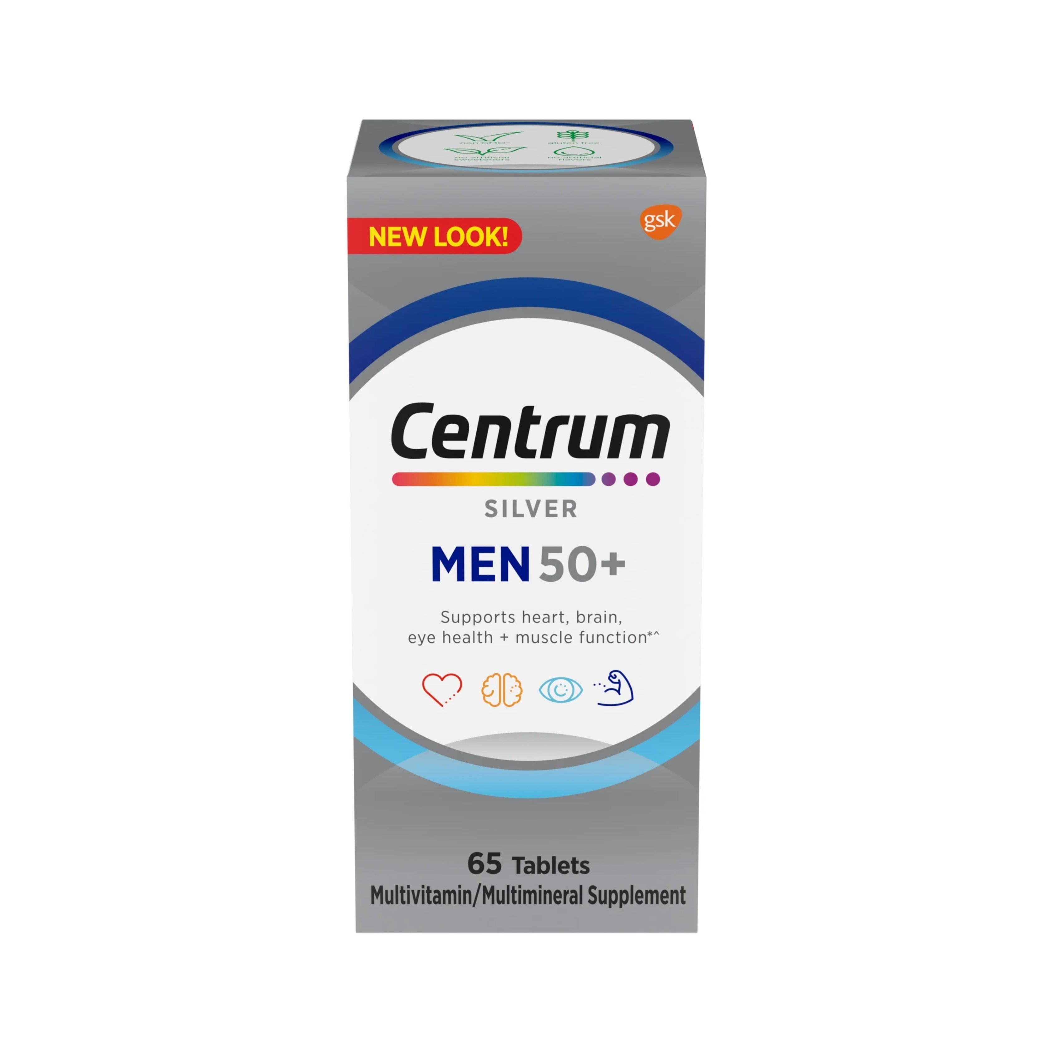Centrum | Silver Mens 50 Plus Vitamins Multivitamin Supplement 65 Tablet | سنتروم سلفر فيتامينات و معادن متنوعة للرجال مقوية للذاكرة و النظر و وظائف القلب